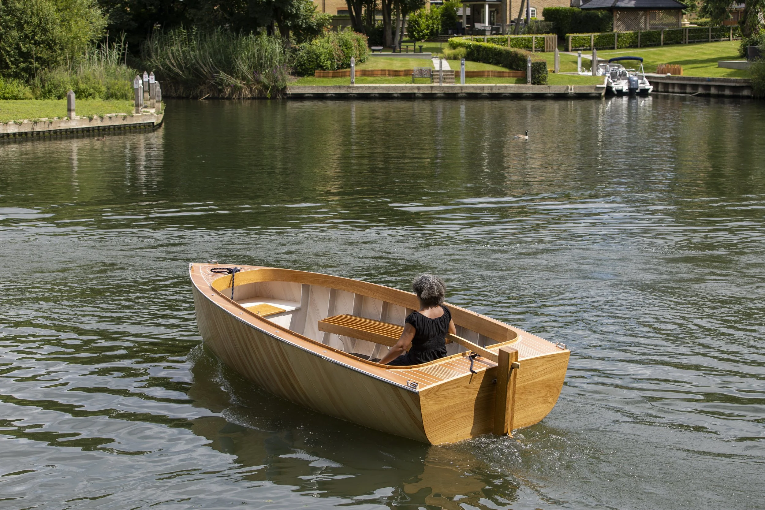 Our latest Stria is 5 metres in length. We used Vendia ply for this particular hull build including the frames, with the fit-out being predominantly Oak and Douglas Fir. The Stria 5 is fitted with two high performance 3500Wh lithium batteries and a Torqeedo cruise 3.0 pod drive. Currently residing on the River Thames.
